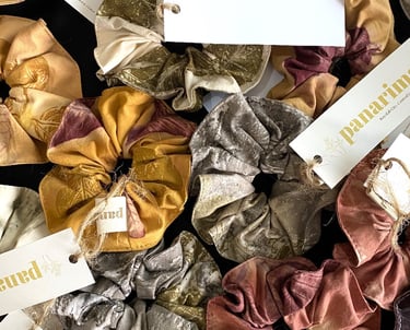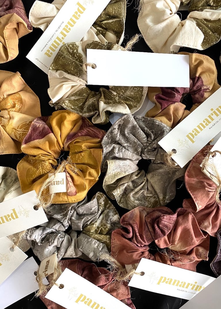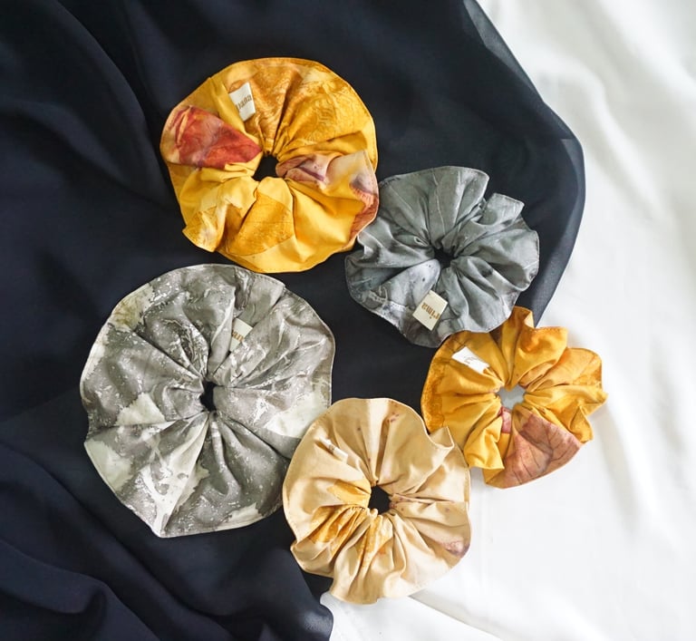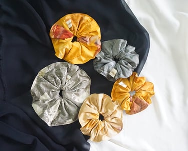 Add a little joy and color to your brand experience with our handcrafted ecoprint scrunchies — wearable pieces of nature that blend style, purpose, and care.